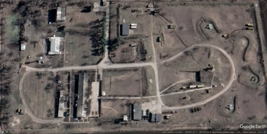 Спутниковый снимок Google Earth: позиция единственного молдавского ЗРК С-125М1неподалёку от аэродрома Бачой