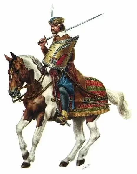 На картинке Карла Виотке венгерский гусар XVI века, во времена Корвина он не сильно отличался от этого