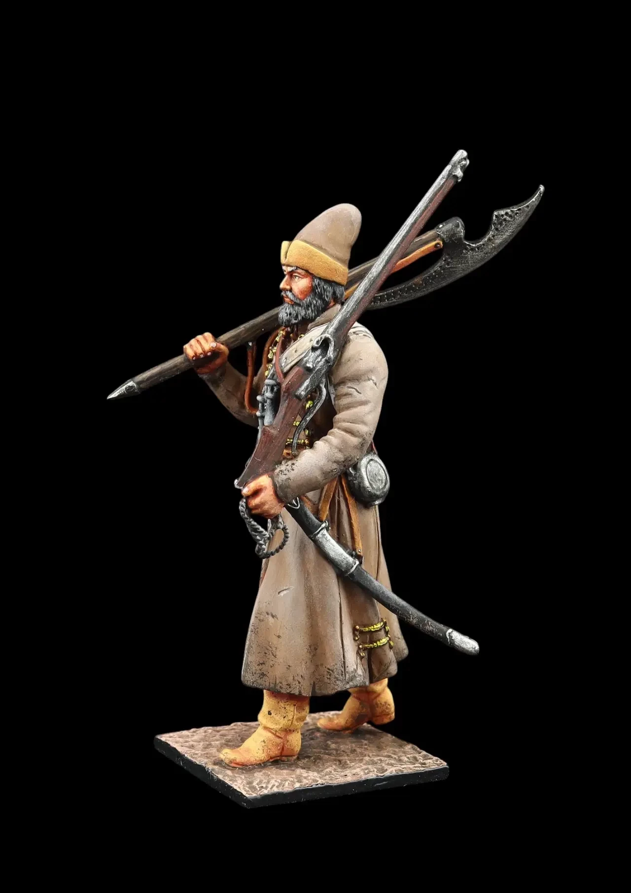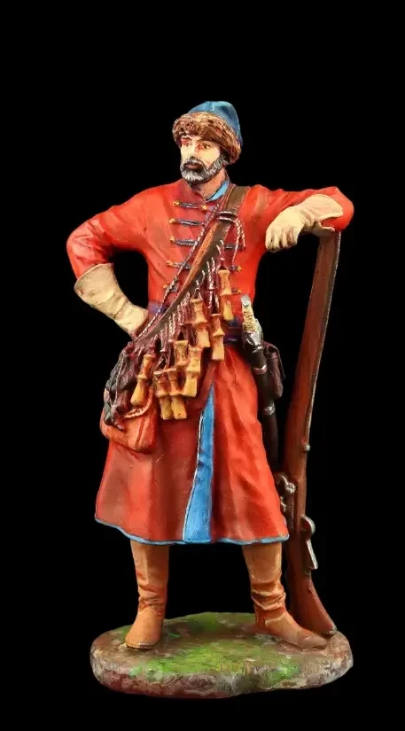 Реестровый казак. Реестровые казаки были частью запорожских казаков и в XVI–XVII веках находились на военной службе у польского короля, будучи внесёнными в особый список (реестр). После воссоединения Левобережной Украины с Россией (1654) войско Запорожское в полном составе с сохранением всех привилегий перешло на службу к русскому царю. Производители: «Silver Dream Studio» и «Солдатики Публия»