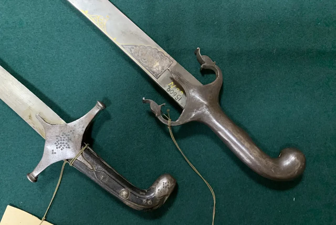 В XVI–XVII вв. восточное оружие и, в частности, сабли были очень широко распространены в Русском государстве. Служили они Кузьме Минину и Дмитрию Пожарскому, да и многим другим известным ратным людей нашей земли. Слева рукоять персидской сабли, справа рукоять сабли из Индии. Пензенский областной краеведческий музей. Фотография автора