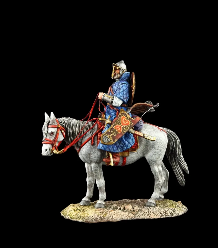 Конный воин поместной дворянской конницы в стальном шлеме и тягиляе – толстом стёганом кафтане, нередко проложенном кусками кольчуги, XVI-XVII вв. Производители: «Silver Dream Studio» и «Pegaso Models», Италия