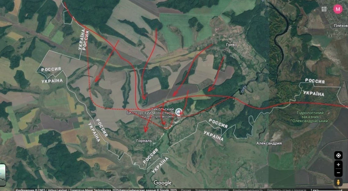 В свою очередь Telegram-канал "Северный ветер" информирует о том, что на Сумском направлении в ходе упорных боев Северяне продвинулись в районе Никольского монастыря и села Горналь.
