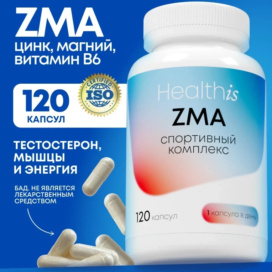 ZMA от HealthIs — достойный претендент на звание бады для тестостерона у мужчин топ, особенно если ты в зале не просто для селфи. В одной капсуле — чистая выгода: цинк поддерживает выработку тестостерона, магний отвечает за мышцы и сон, а витамин B6 помогает усваивать всё это богатство. ZMA не разгоняет гормоны до безумия, а стабилизирует их — с умом и пользой. А ещё помогает восстанавливаться и не чувствовать себя выжатым лимоном после тренировки.
