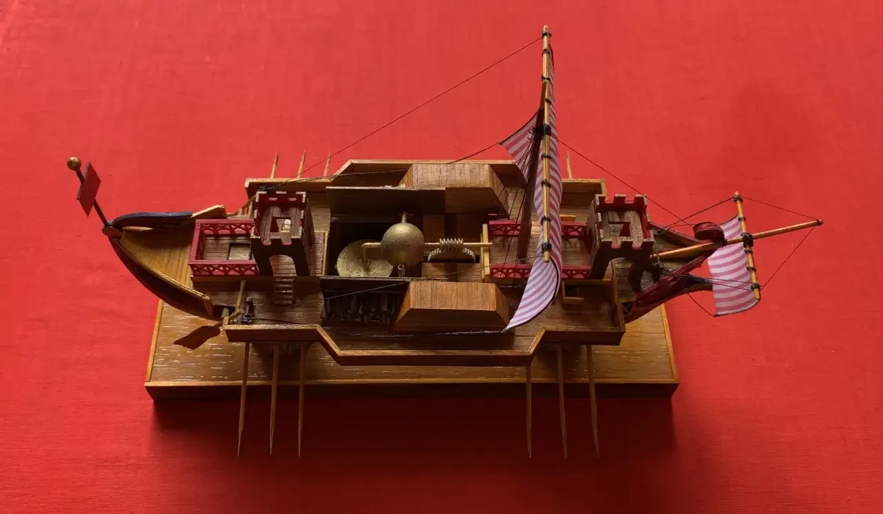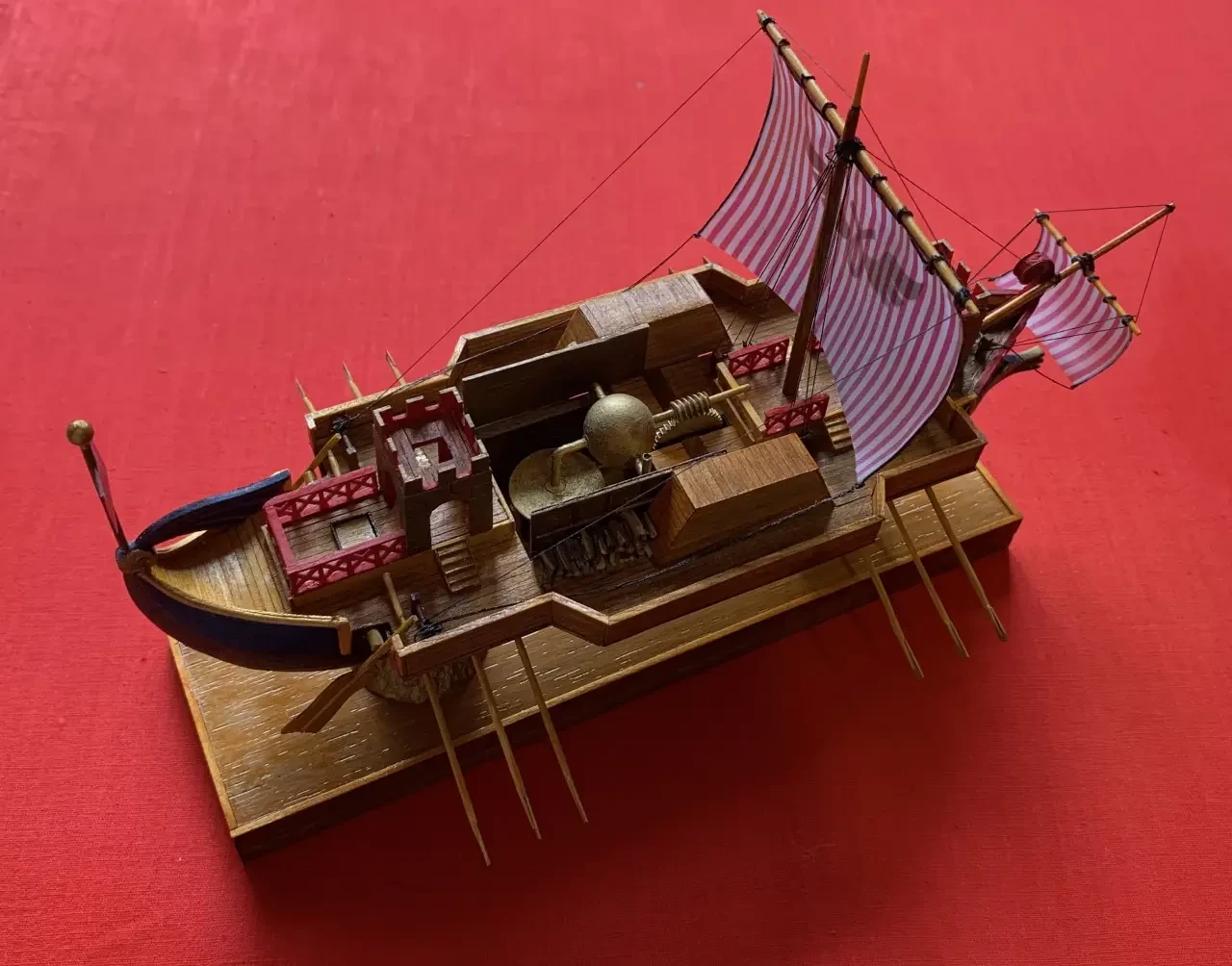 Понятно, что будь это реальный корабль, к нему можно было бы придираться и придираться – и это не так, и другое не… эдак. Но рассматривать его нужно именно как иллюстрацию того, что мы называем «полётом фантазии», не более. Ну а ребятам, когда они будут изучать греческую культуру в рамках школьного учебника и знакомиться с Архимедом, совсем не помешает ещё и увидеть эолипил Герона и даже пофантазировать на тему: «А как бы это мог на самом деле выглядеть его корабль, если бы он всё-таки был бы построен?».