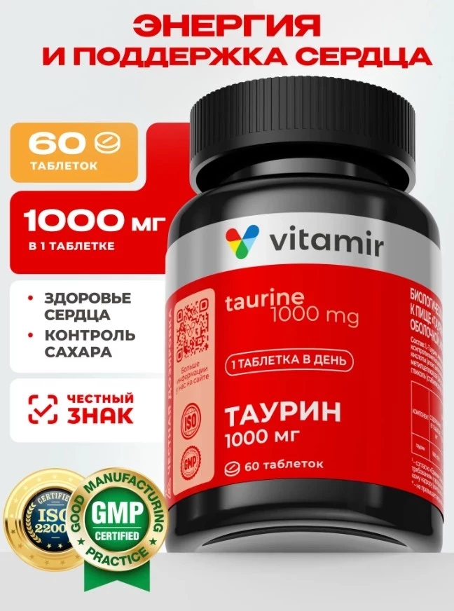 Таурин 1000 мг от VITAMIR PRO — это эффективная добавка, которая поможет повысить уровень энергии и выносливости. Ее основное действие направлено на улучшение работы мышц и нервной системы, благодаря L-таурину, который регулирует обмен кальция в клетках. Это особенно важно для тех, кто активно занимается спортом. Продукт также способствует снижению нервного напряжения, улучшению обмена веществ и поддержанию нормального уровня сахара в крови. Формула с 1000 мг таурина в каждой таблетке идеально поддерживает физическую активность в течение всего дня.