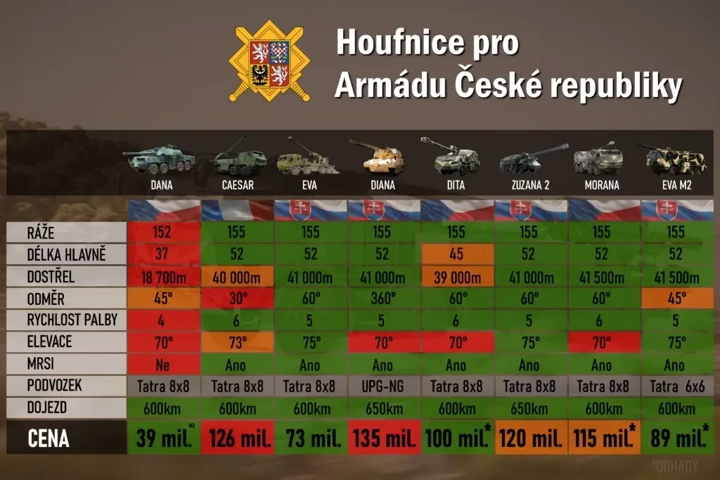 Словацкие образцы достигают показателей мирового класса, а гаубицы EVA, EVA M2 и Zuzana 2 по многим параметрам даже превосходят лучшие мировые аналоги. Однако чешский тендер неожиданно выиграли французские CAESAR 8х8