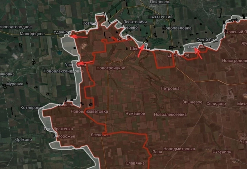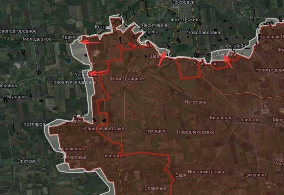 На Покровско-Новопавловском направлении продолжаются интенсивные боестолкновения к востоку от Покровска, в Лысовке, а также по линии Даченское- Зеленое-Возрождение. Также отмечаются боестолкновения в районе Удачного и в Успеновке.