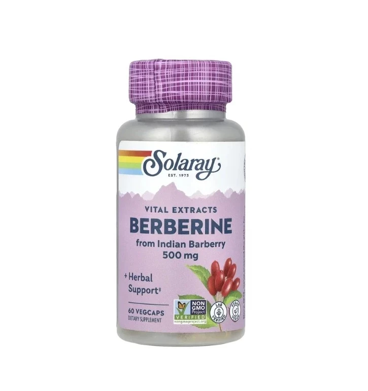 Solaray Berberine 500 mg — это мощная формула на растительной основе, которая работает как швейцарские часы: стабилизирует уровень сахара в крови, поддерживает работу сердца и помогает наладить пищеварение. В каждой капсуле — 500 мг берберина из корня индийской барбарисы, а технология постепенного высвобождения делает эффект мягким, но стойким. Этот фитокомплекс из топ американских бадов идеально подходит тем, кто стремится к балансу в теле без агрессивной фармы.