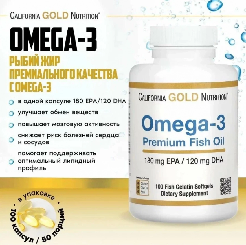 California Gold Nutrition Омега-3 — это тот случай, когда в одной капсуле концентрируется максимум пользы без лишних слов. Продукт заслуженно держит позиции в рейтинге американских производителей БАДов, обеспечивая организму стабильную дозу ЭПК и ДГК. Формат — 100 капсул премиального рыбьего жира, полученного из тунца, макрели, трески и сардины, — подходит тем, кто хочет поддержать сердце, мозг, иммунитет и уровень холестерина без дефицита полезных жиров в рационе. Простой прием, натуральный состав и cGMP-качество — всё как надо.