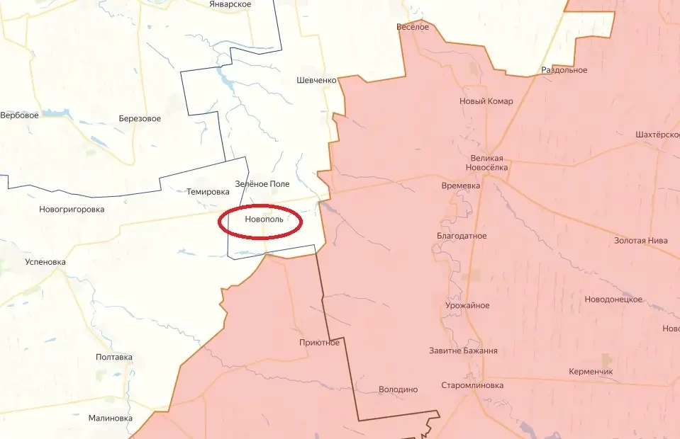 Подразделения российской армии начали продвижение западнее Великой Новоселки в направлении Днепропетровской и Запорожской областей. Активные штурмовые действия идут сразу на трех участках, на которых ранее было затишье: в районе Вольного Поля, Зеленого Поля и Новополя, расположенного к юго-западу от Великой Новоселки на стыке ДНР и Запорожской области.