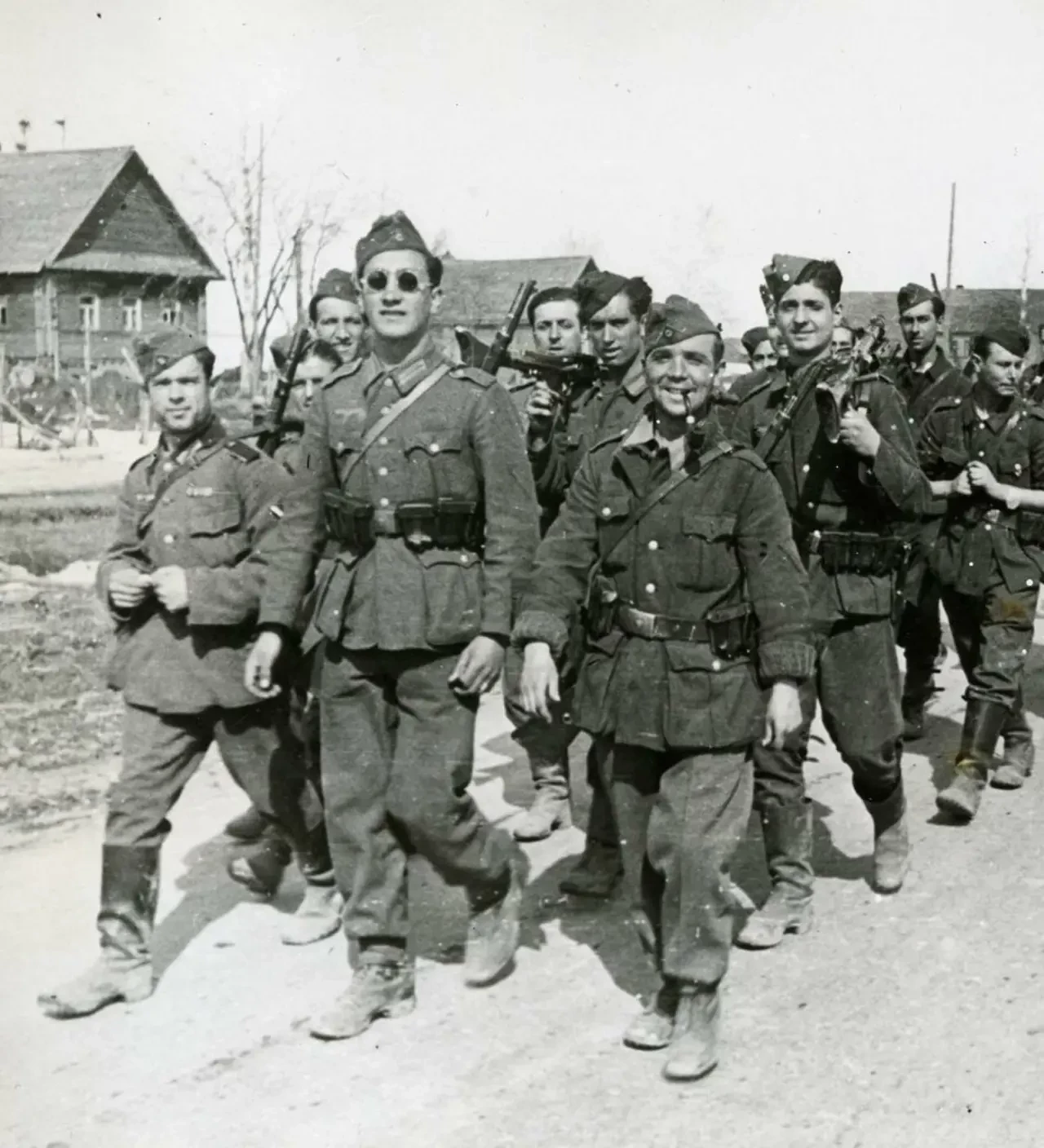 Итак, на Восточном фронте испанцы сразу обратили на себя внимание своим довольно карикатурным внешним видом, низкой дисциплиной и склонностью к воровству, причем не только у местного населения, но и у союзников-немцев. О том, как они обращались с оружием и амуницией, можно судить по сообщению Теодора фон Бока: