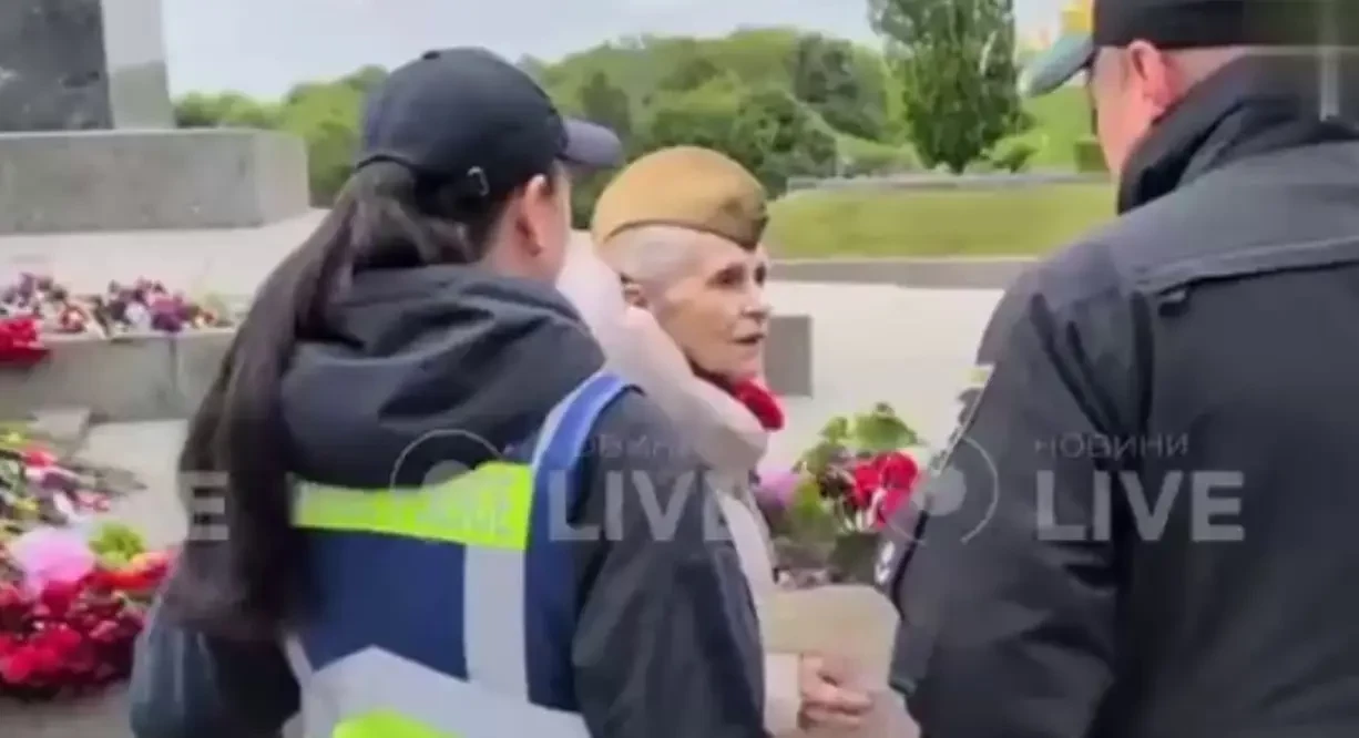 Украинские правоохранители задержали и увезли в участок «преступницу», которой оказалась пенсионерка Галина Петровна, пришедшая к Вечному огню, чтобы возложить цветы воинам-освободителям в День Великой Победы.