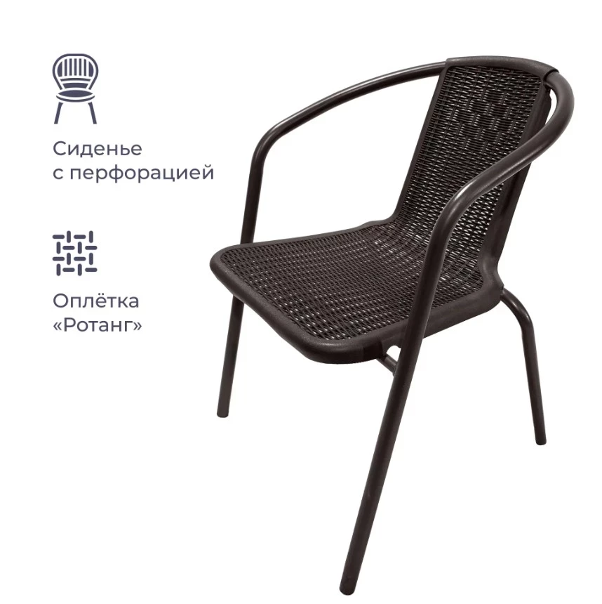 Если вы задумываетесь, как выбрать мебель для балкона, чтобы она была одновременно лёгкой, устойчивой и не боялась влаги — кресло Homsly LFSA 50 может стать отличным решением. Модель выполнена из прочного пластика в стиле «ротанг» и имеет металлический каркас, выдерживающий нагрузку до 120 кг. Весит всего 3 кг, поэтому её легко переставлять, а кофейный цвет универсален и не маркий. Оптимальные габариты (56×56×72 см) позволяют использовать кресло даже на узком балконе, а подлокотники добавляют комфорта для длительного отдыха.