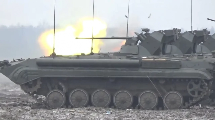 БРМ-1К в новом облике на полигоне, 2023 г.