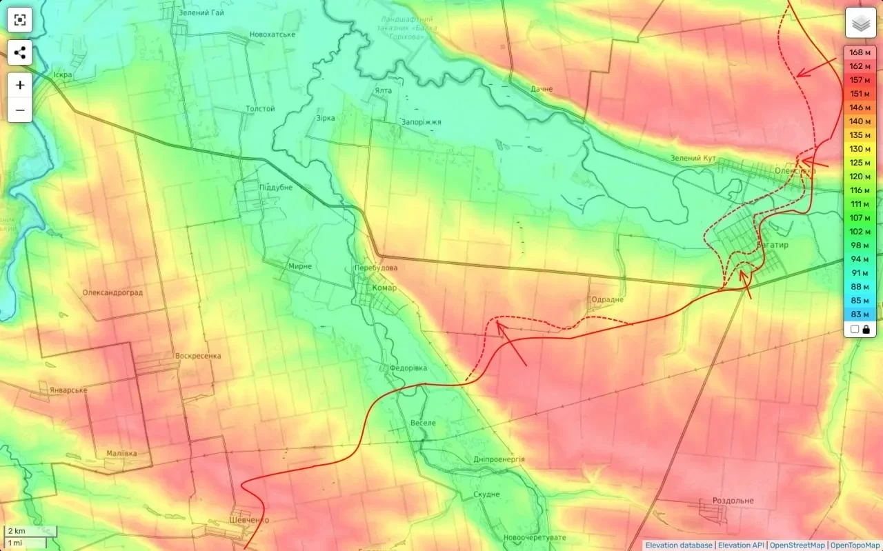 В соседнем населённом пункте Алексеевка продолжаются ожесточённые бои. Российские войска развивают наступление в направлении сёл Отрадное и Комар, создавая угрозу для украинских позиций.