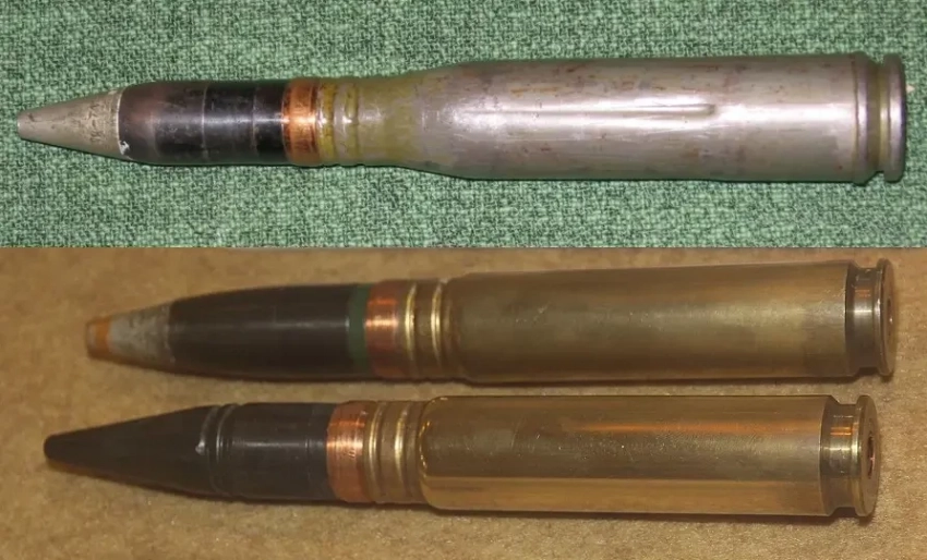 Снаряд 23х152 мм (вверху) и снаряды 23х115 мм (внизу)