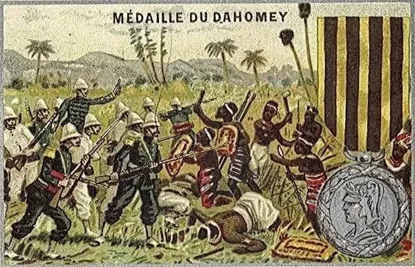 В 1882 году Порто-Ново заключил договор о защите с Францией, и, предсказуемо, начались набеги дагомейцев. Во время одного из них, на деревню в Уэме, кто-то из местных жителей сказал, что триколор его защитит. У мино было своеобразное чувство юмора: они отрубили наивному человеку голову и, завернув её во французский флаг, отправили французскому послу. Такое оскорбление терпеть было нельзя...
