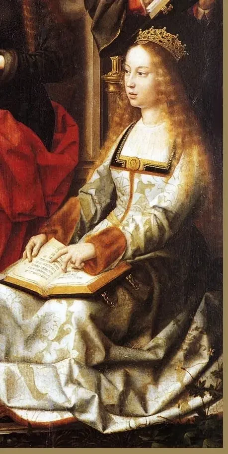 А на этом портрете работы Михеля Зиттова, написанном около 1503-1504 гг., вы видите дочь Изабеллы – Екатерину Арагонскую, первую из восьми жён английского короля Генриха VIII: