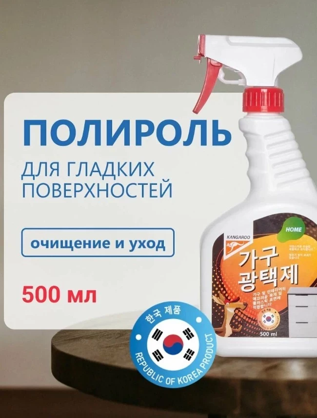 Корейский полироль Kangaroo Home входит в число лучших средств по уходу за мебелью благодаря сочетанию воска и глицерина в составе, что позволяет эффективно восстанавливать и защищать деревянные, пластиковые и другие гладкие поверхности. Средство легко удаляет пятна и пыль, придаёт блеск и заполняет мелкие царапины, не оставляя жирной пленки и разводов. Антистатический эффект значительно снижает повторное оседание пыли, облегчая регулярный уход. Удобный распылитель экономит время и равномерно распределяет средство, не требующее смывания водой.