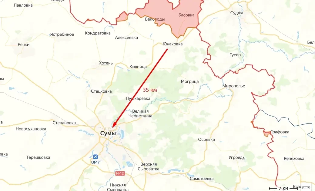 Согласно сообщениям, опубликованным украинскими околовоенными пабликами, ВС РФ вошли в поселок Юнаковка в Сумской области.