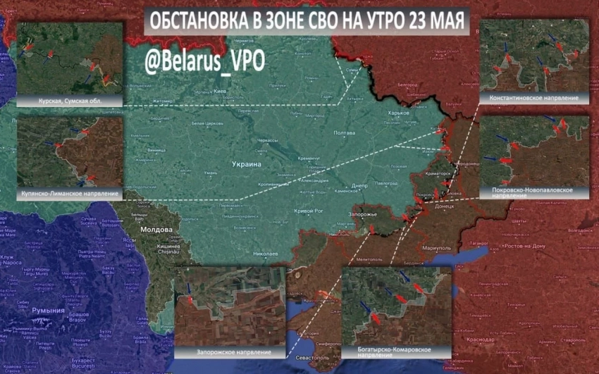 Обновлённая карта боевых действий на Украине по данным на 14:00 мск от 23.05.2025: военная сводка