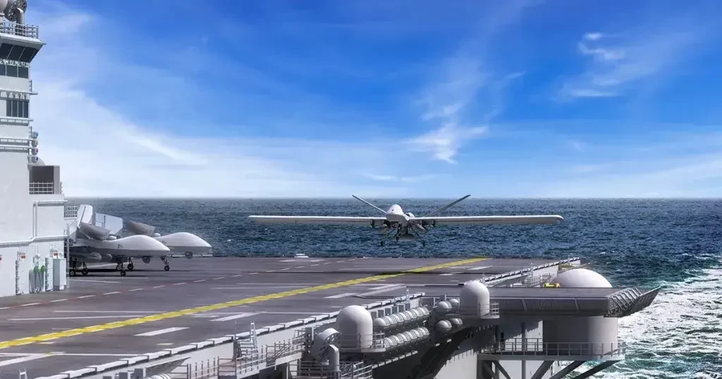 Что касается MQ-9, то Reaper наземного базирования уже состоит на вооружении Франции, но его производитель, компания General Atomics Aeronautical Systems, активно ищет способы адаптации дронов серии MQ-9 для использования на авианосцах. Компания разработала комплект крыльев, который превращает MQ-9B в большой палубный дрон, размещаемый на корабле и способный взлетать с укороченных ВПП. Она также продемонстрировала свой Mojave, специально разработанный для выполнения коротких взлётов и посадок, в том числе с различных авианосцев.