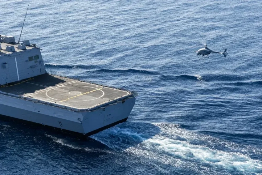 VSR700 во время испытаний садится на палубу фрегата FREMM