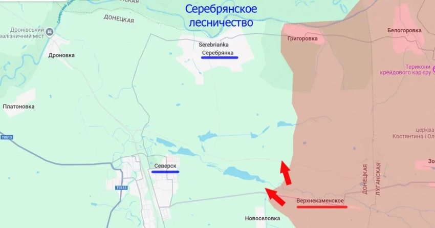 Одновременно с освобождением Верхнекаменского российские Вооружённые силы овладели территорией площадью около 6 квадратных километров к северу от этого населённого пункта. Это позволяет продвигаться вдоль реки Каменка как по направлению к Северску, так и, например, на север – для блокирования группировки противника, засевшей в Серебрянском лесничестве.