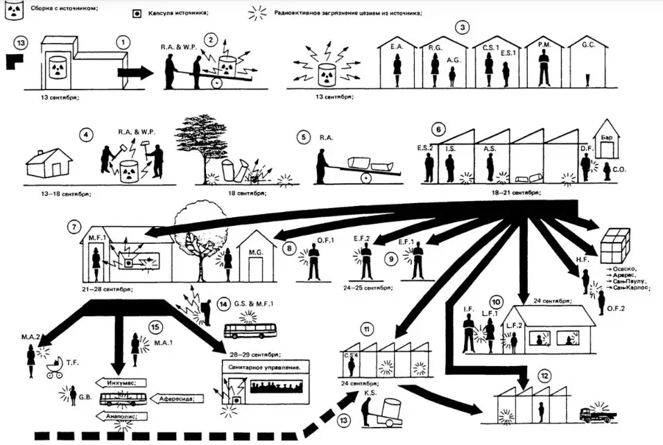 Однако случай, произошедший в бразильском городе Гояния в 1987 году, наглядно показывает, что для создания локального мини-Чернобыля с человеческими жертвами и десятками пострадавших не требуется ни ядерный реактор, ни какая-либо утечка с базы хранения опасных материалов. Достаточно наличия двух не очень образованных, но весьма охочих до халявного металлолома людей и одного медицинского прибора.