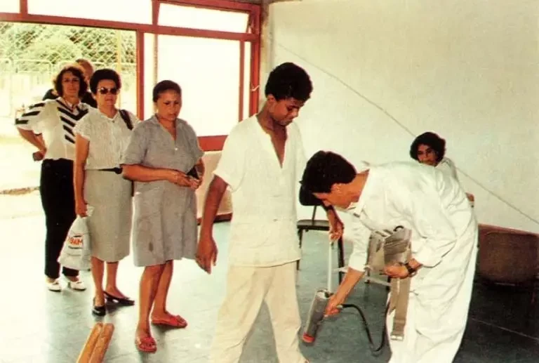 Вместо привычных сантехнических изделий отхожие места для пациентов оборудовались специальными ёмкостями. Скопившиеся в итоге 350 кг фекалий и 3 кубометра мочи пришлось дезактивировать с помощью фильтрации и использования негашёной извести и цемента. Контактируя с больными и их выделениями, медицинские работники за несколько месяцев получили дозу около 5 мЗв (500 мР).
