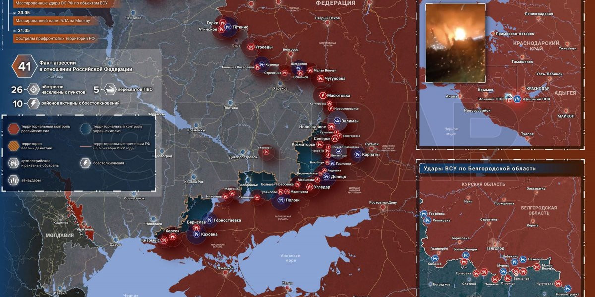 - Карта боевых действий на Украине сегодня, Общая обстановка к утру 2 июня 2023 года от Mash