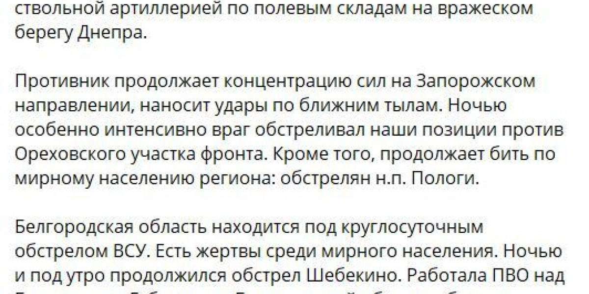 - Об ударах по Шебекино и утренней попытке прорыва ВСУ