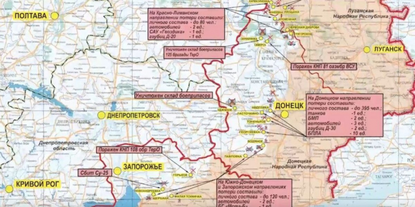 Кроме того, уничтожены пункты временной дислокации подразделений ВСУ в районе населенных пунктов Полтавка, Малая Токмачка и Великая Новоселка.
