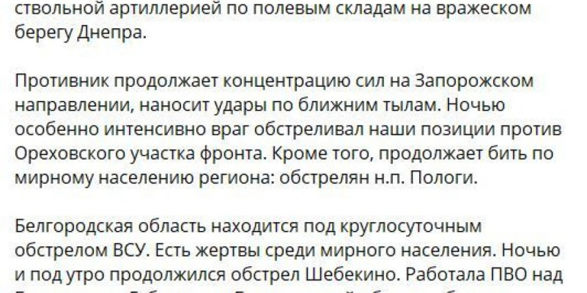 Об ударах по Шебекино и утренней попытке прорыва ВСУ