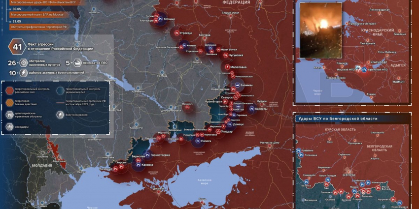 Бывший депутат Верховной рады Илья Кива 30 мая сообщил, что российская ракета ликвидировала ставку ГУР Минобороны Украины. По его словам, атака беспилотников на Москву — это месть начальника управления Кирилла Буданова за его уничтоженную ставку в Киеве.