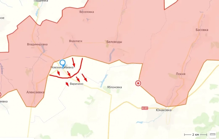 Сегодняшний день не стал исключением. Один из западных картографических ресурсов сообщает, что наши военные взяли под свой контроль село Новониколаевка в Сумской области и уже зашли в соседнее с ним Варачино.