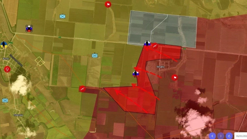 На Богатырско-Комаровском направлении российские войска расширили контроль территории в Богатыре и севернее Отрадного в западном направлении. Вместе с этим продолжаются встречные бои северо-восточнее Днепроэнергии, сообщает Telegram-канал "БелВПО".