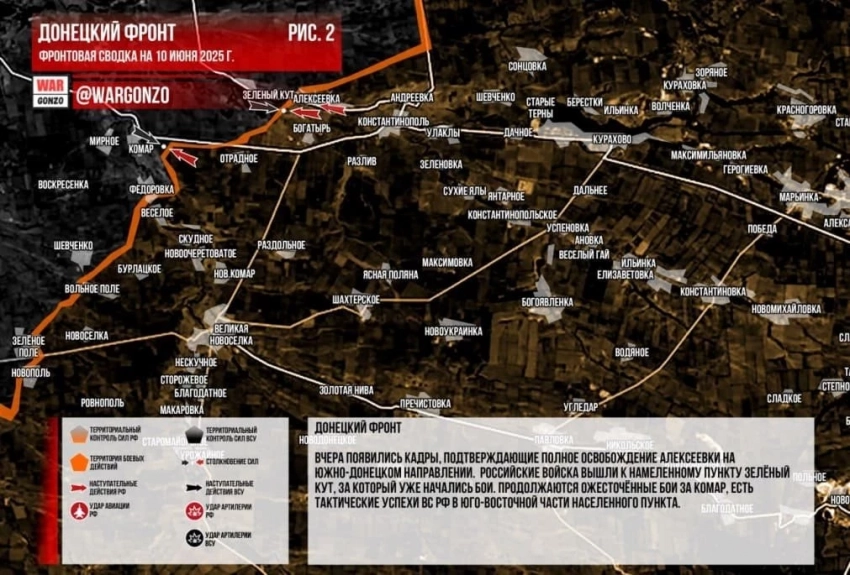 ВС России продолжают вести ожесточённые бои северо-западнееё Орехового на Покровском направлении: свежие данные на 10.06.2025