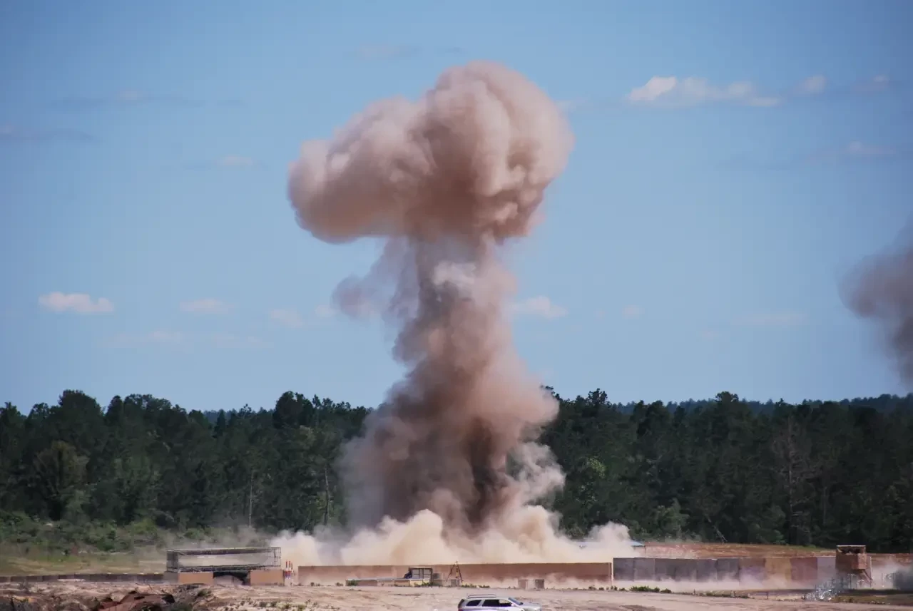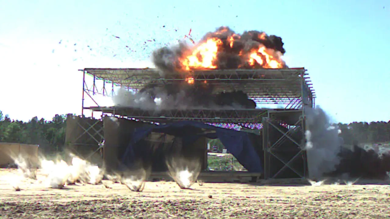 Снайперы обстреливали модульное сооружение и пытались поразить цели внутри, но не преуспели в этом. Затем имела место имитация миномётного обстрела. Две миномётные мины подорвали на крыше укрытия и рядом с ним, на условной позиции миномётчиков. Следующую атаку провел условный смертник, подорвавшийся у входа в опорный пункт. Затем за пределами сооружения сработало самодельное взрывное устройство на автомобиле.