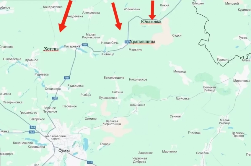 Кроме того, подразделения группировки войск «Север» нанесли поражение скоплениям живой силы и техники ВСУ в районах населенных пунктов Хотень и Храповщина. ВС России продвигаются в направлении последнего, находящегося в 16-17 километрах от областного центра - города Сумы.