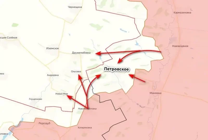 Противник превратил населенный пункт Петровское (Грекова - укр. назв.) в мощный укрепрайон, попытки российских войск взять село с ходу не увенчались успехом. На данный момент наши начали планомерное взламывание обороны врага, обходя село с двух сторон. Бои идут ожесточенные, противник отступать не намерен. Тем не менее наступление ВС РФ на данном направлении враг остановить не сумел, соседние села постепенно переходят под контроль российской армии.