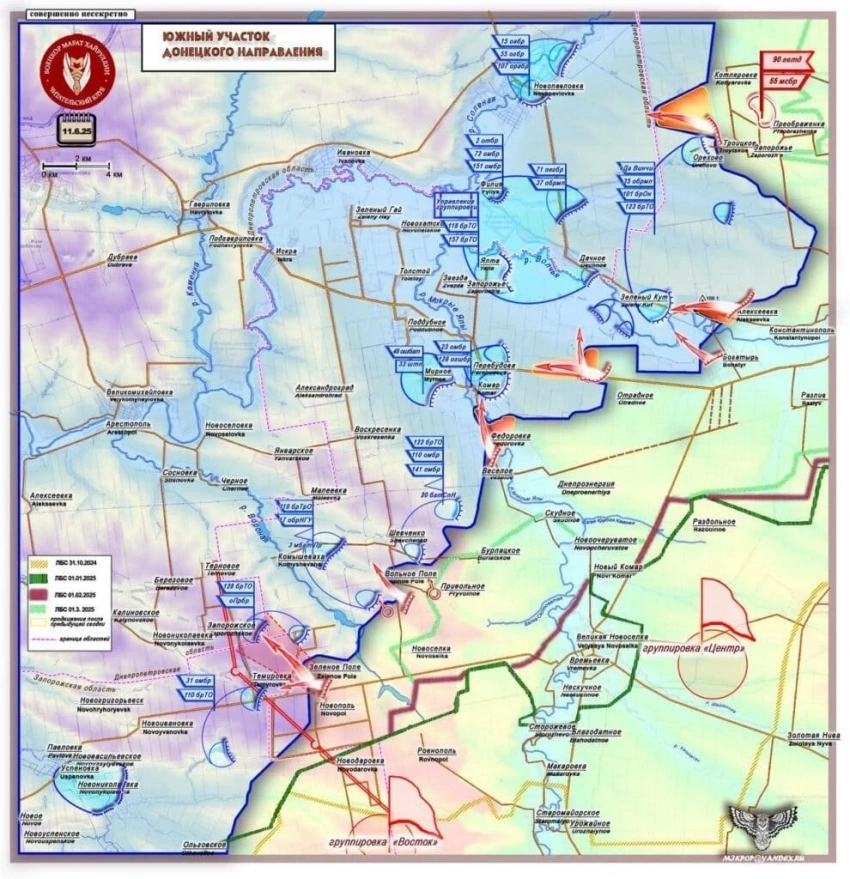 На Покровском направлении наши взяли укрепрайон севернее Новосергеевки и расширили контроль под Котляровкой. С ожесточёнными боями ВС России наступают на Муравку, а западнее Удачного пытаются выйти на границу Днепропетровской области.
