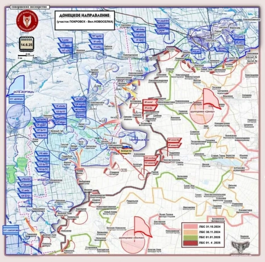 Карта боевых действий на Украине. Последние данные на 15.06.2025