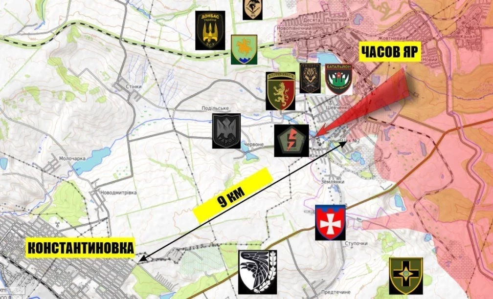 К западу от Торецка упорные бои в Яблоновке. Продолжаются бои в Александро-Калиново. Севернее Торецка ВС РФ штурмуют позиции противника в районе Нелеповки у восточного берега Клебан-Быкского водохранилища. Успех на этом участке позволит перерезать основные дороги ВСУ, включая ж/д, на Константиновку.