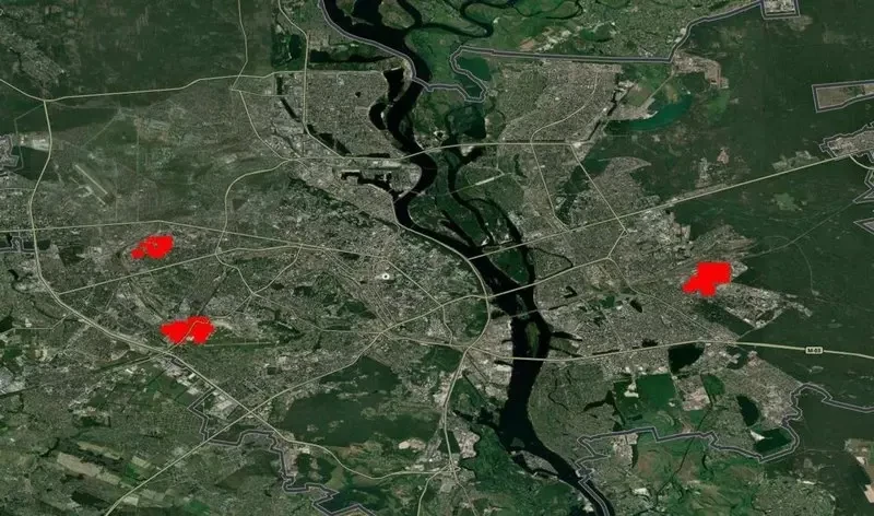 В каком именно районе под Киевом был поражен склад, не сообщается, но крупные пожары после российских ударов были зафиксированы спутниковой системой мониторинга пожаров NASA в трех районах: это Жуляны, где вероятней всего поражены системы ПВО Patriot; Соломенский район и район Киевского радиозавода в Дарницком районе.