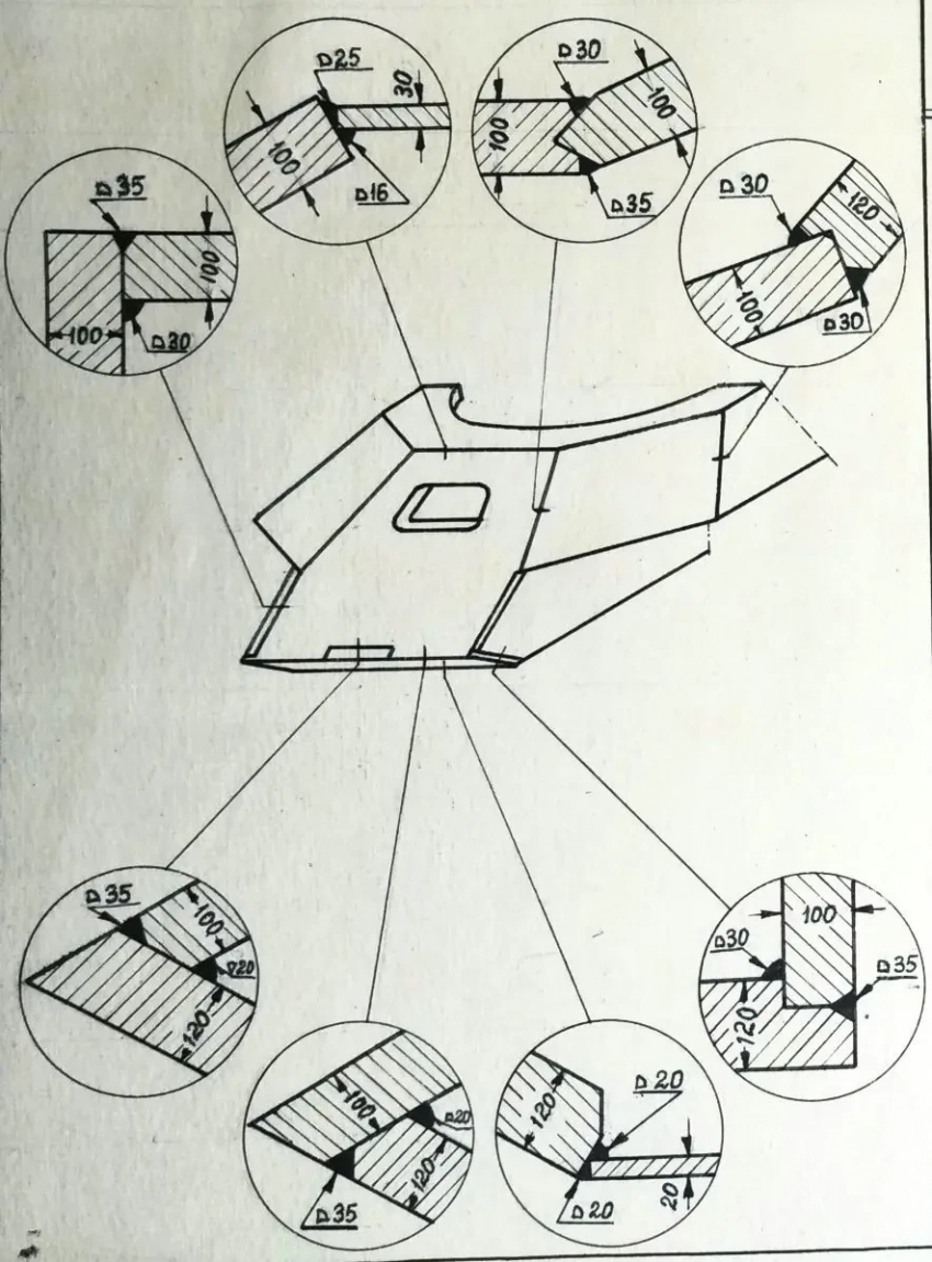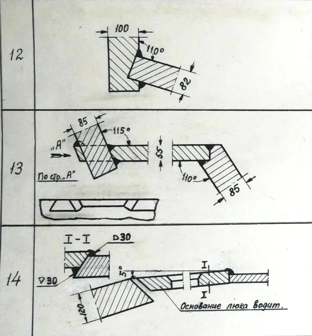 8. Соединение днища корпуса с бортовыми кормовыми деталями показывают хорошую прочность и живучесть при соединении в четверть, в шип, в распор и нахлестку, сваренных качественными электродами.