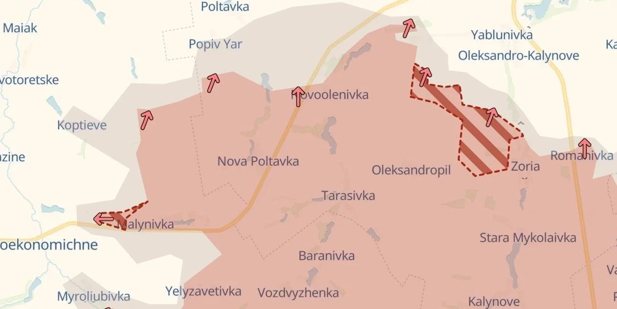 Российские войска расширили контроль территории западнее Мирного. Накануне начались ожесточённые боестолкновения в районе Гродовки в направлении Проминь.