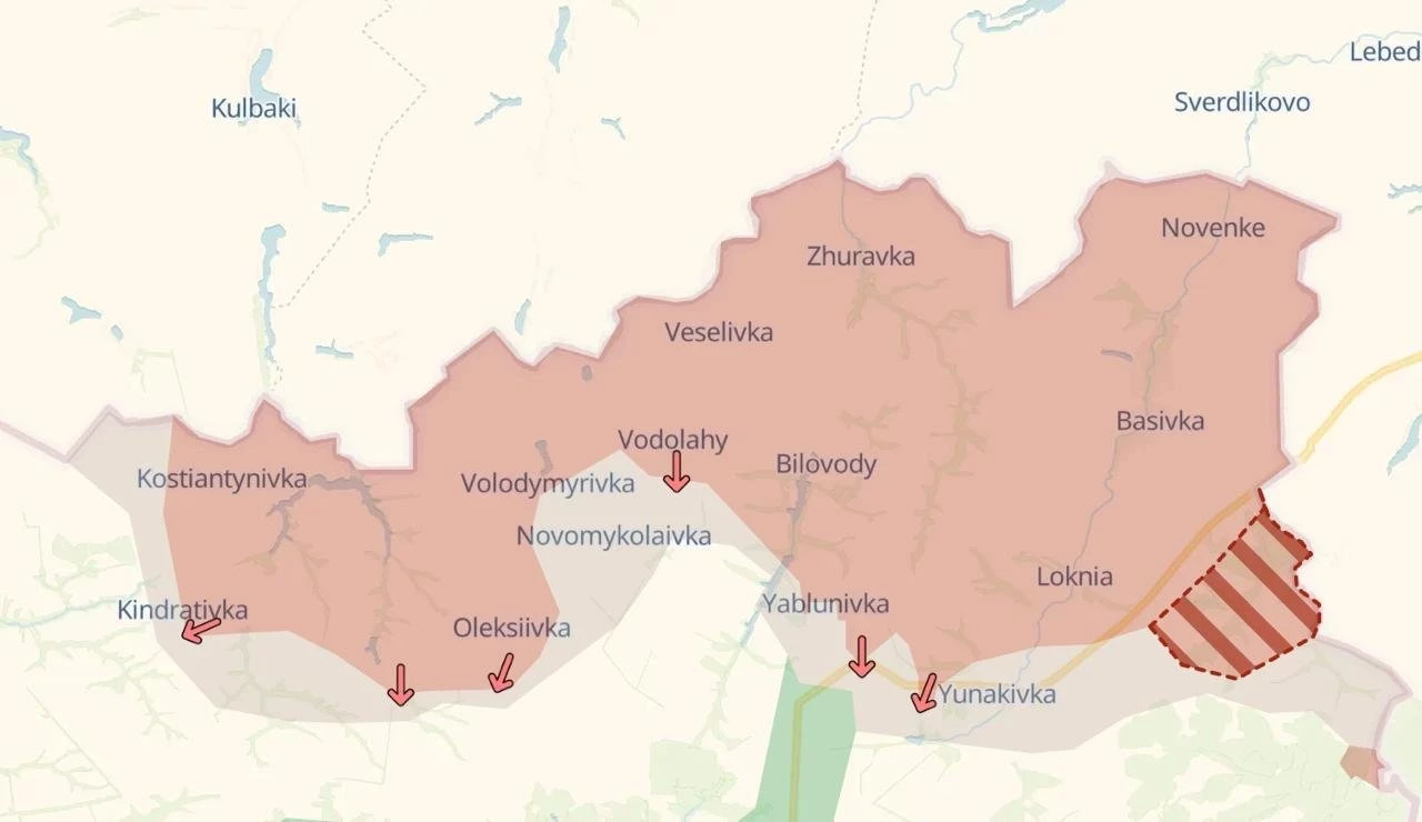 Украинские ресурсы подтверждают наступление российской армии в Сумской области. Информацию о продвижении Вооруженных сил России публикует проукраинский ресурс Deep State.