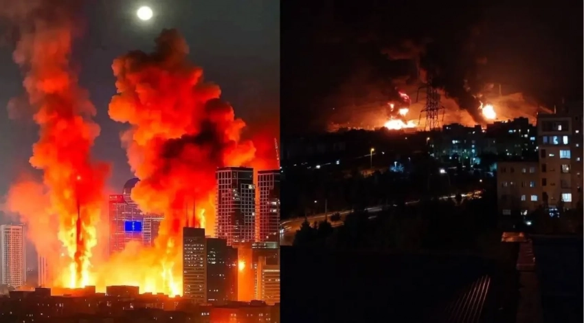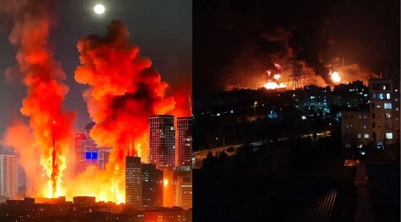 Горящие здания в Израиле и горящий нефтяной терминал в Иране