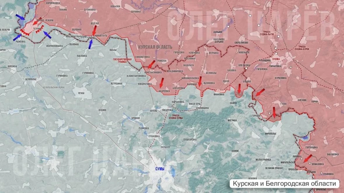 «Зеленский говорит о «выполнении задач в Курской области», а DeepState закрашивает сёла в Сумской области в серый цвет. Украинские ЛОМы в Telegram пишут, будто российскую армию «отбросили от Юнаковки», а военнослужащие ВСУ заявляют, что не контролируют даже сам населенный пункт, не говоря уже о продвижении вперёд», - написали военкоры.